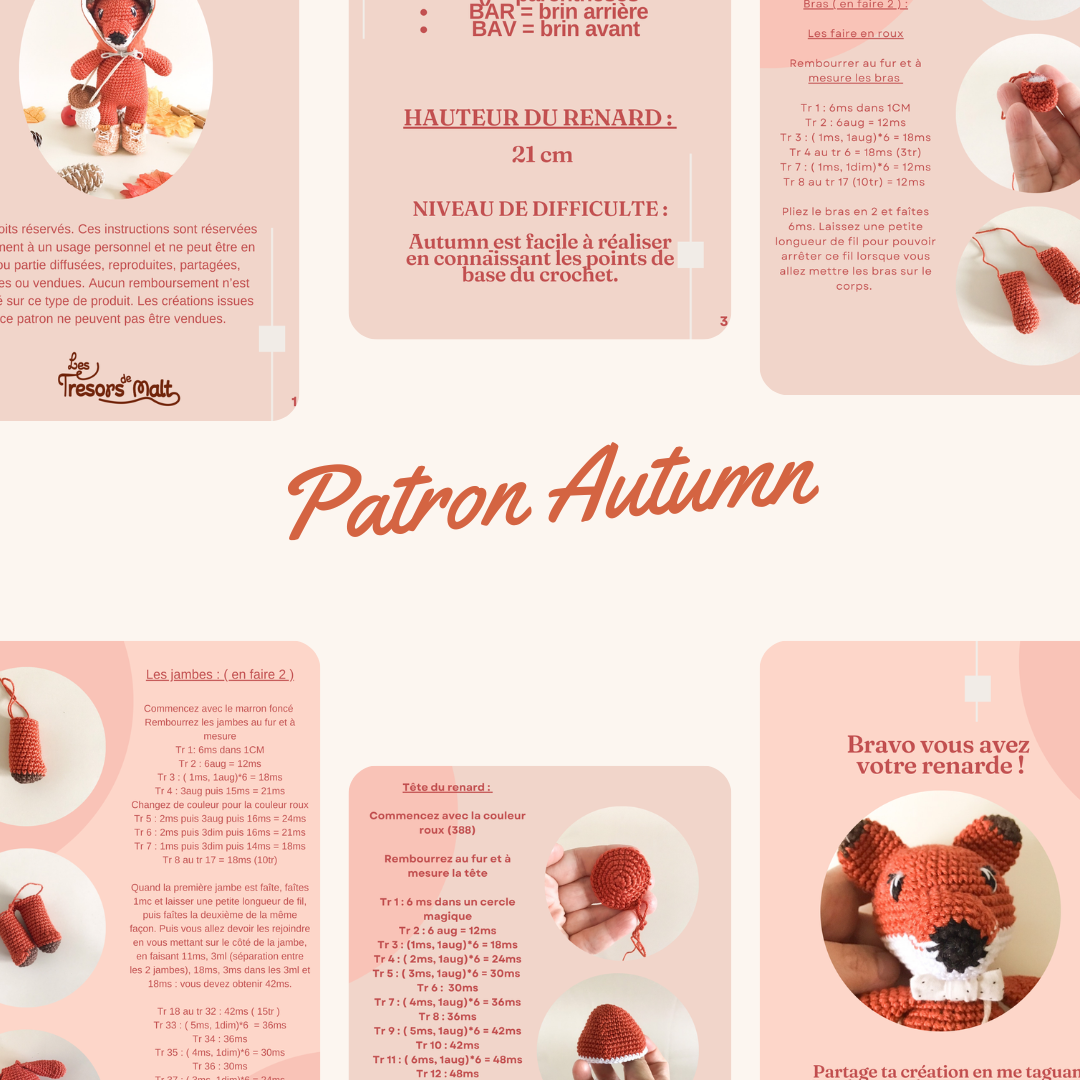 • Une carte avec la photo de la renarde et au dos de celle-ci vous trouverez le qr code pour le patron écrit en PDF avec des instructions claires, illustrées et détaillées